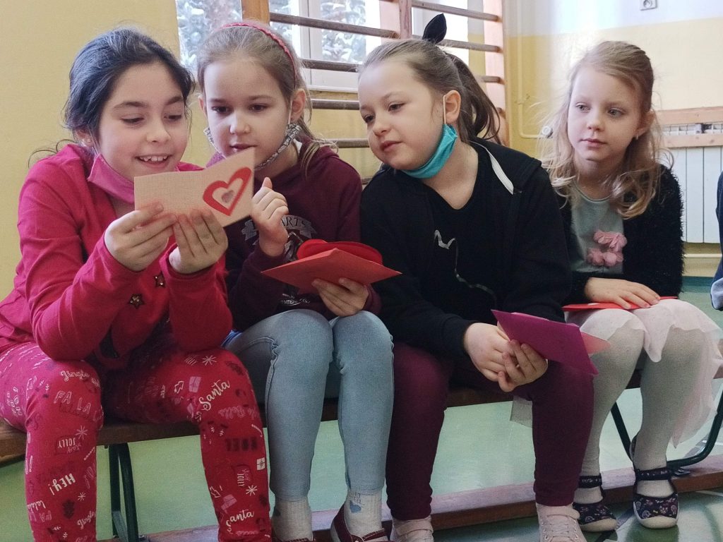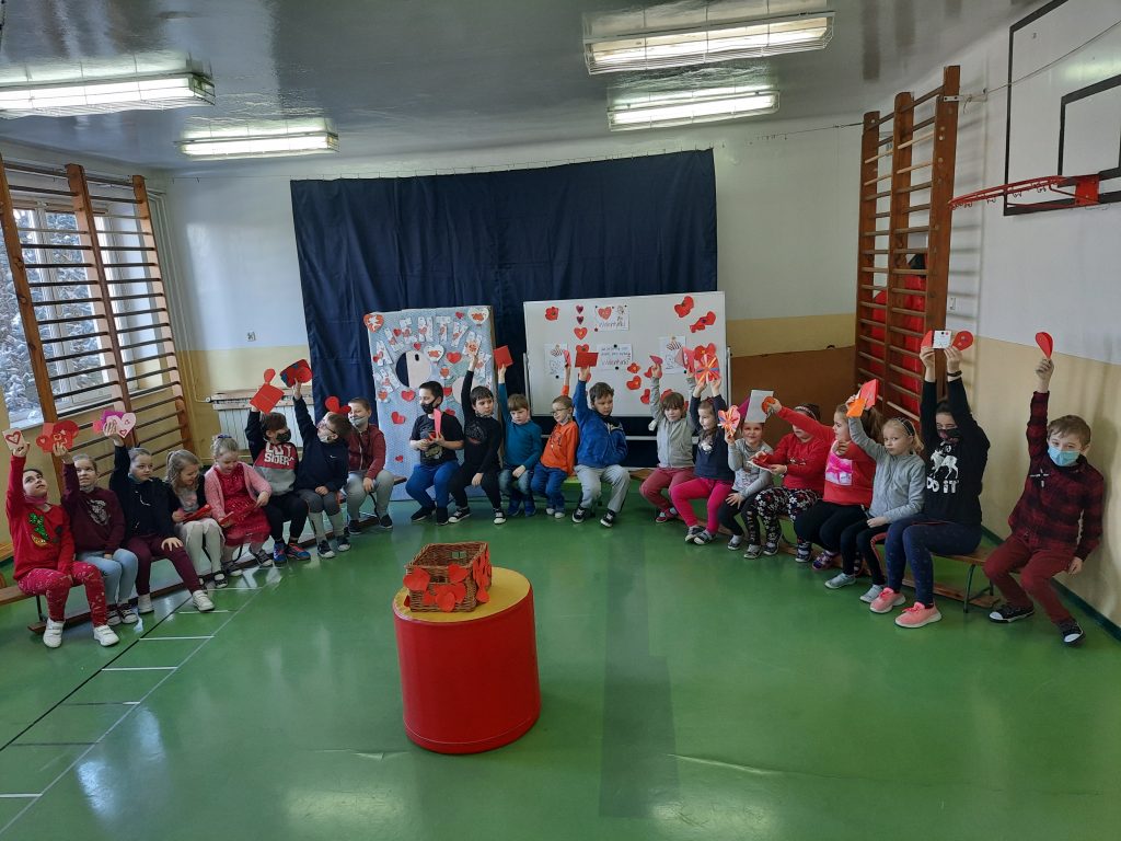 W piątek, 12 lutego w naszej szkole zorganizowano walentynki. Tego dnia wszyscy rozmawialiśmy o św. Walentym i o dniu, którego jest patronem. Uczniowie już wcześniej przygotowywali się do tego dnia, pracując nad walentynkowymi kartkami, którymi obdarowali później swoich kolegów i nauczycieli. Oczywiście tego dnia królował kolor czerwony i motyw serduszka. W piątek prężnie działała Walentynkowa Poczta Przyjaźni, która zbierała przygotowane walentynki. Najważniejszym punktem tego dnia było spotkanie na sali gimnastycznej, podczas którego rozdano wszystkie kartki. Każde z dzieci otrzymało od swoich przyjaciół piękne walentynki i życzenia. Na pamiątkę tego wydarzenia, dzieci mogły zrobić sobie zdjęcie w walentynkowej fotobudce. Zarówno uczniowie, jak i nauczyciele, chętnie skorzystali z tej możliwości. To był dzień pełen życzliwości, serdeczności i przyjaźni.